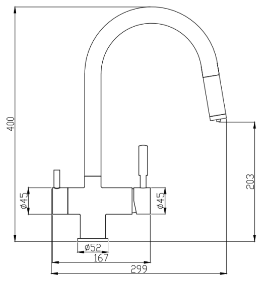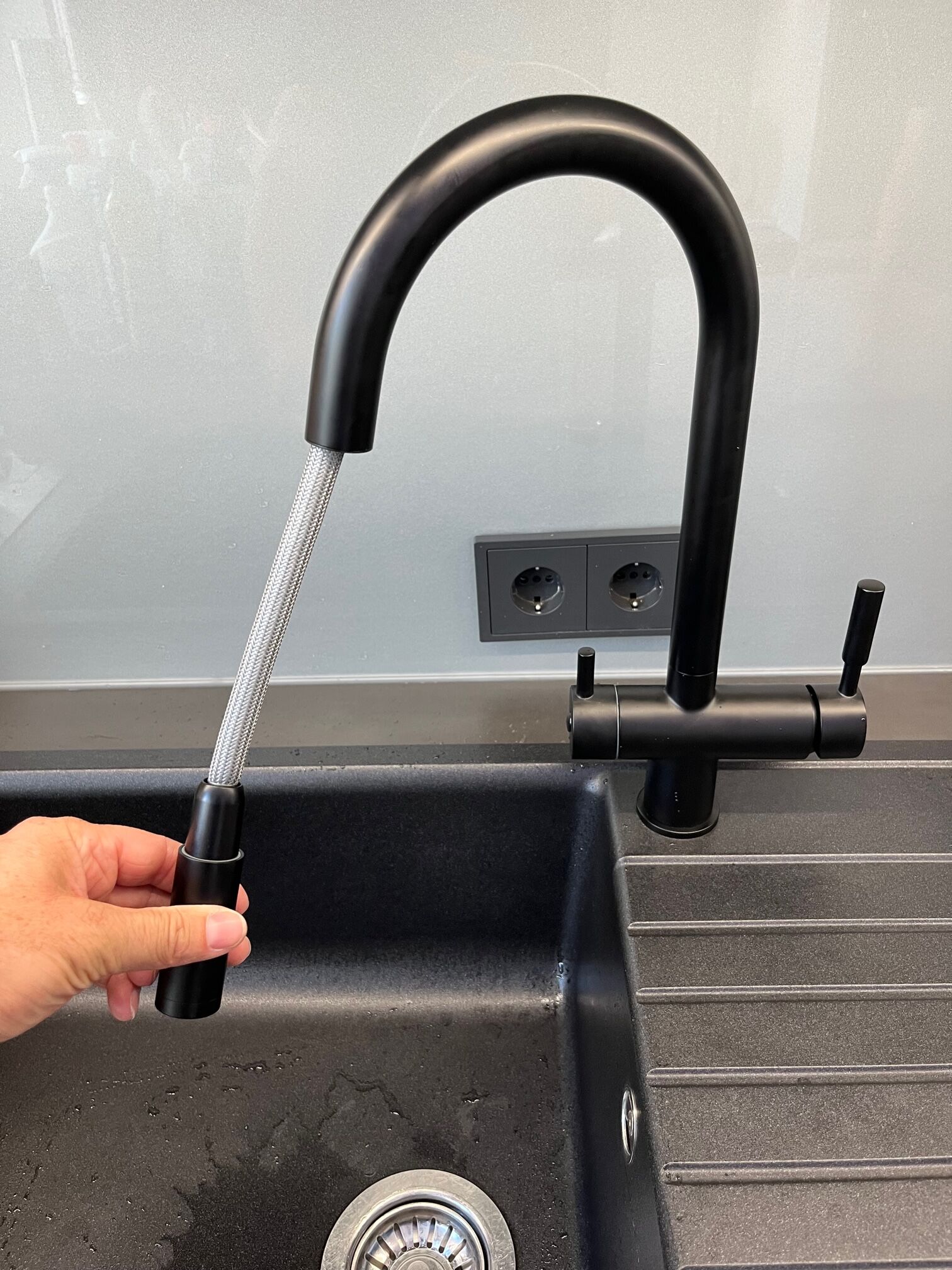 - Ausziehbarer Schlauch, somit problemlose Reinigung der Spüle und Geschirr.