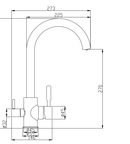 Zwei Hebel für die Ausgabe von Osmosewasser oder Leitungswasser dank eines hochwertigen Systems mit dem der Wasserhahn für jede Aufgabe an der richtigen Stelle positioniert werden kann.